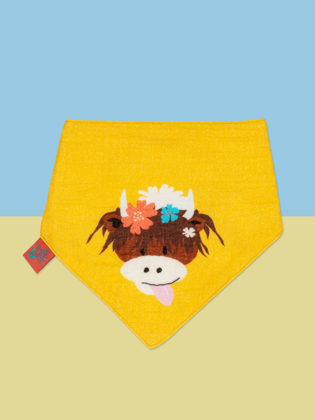 Bonnie Highland Cow Yellow Muslin Bib