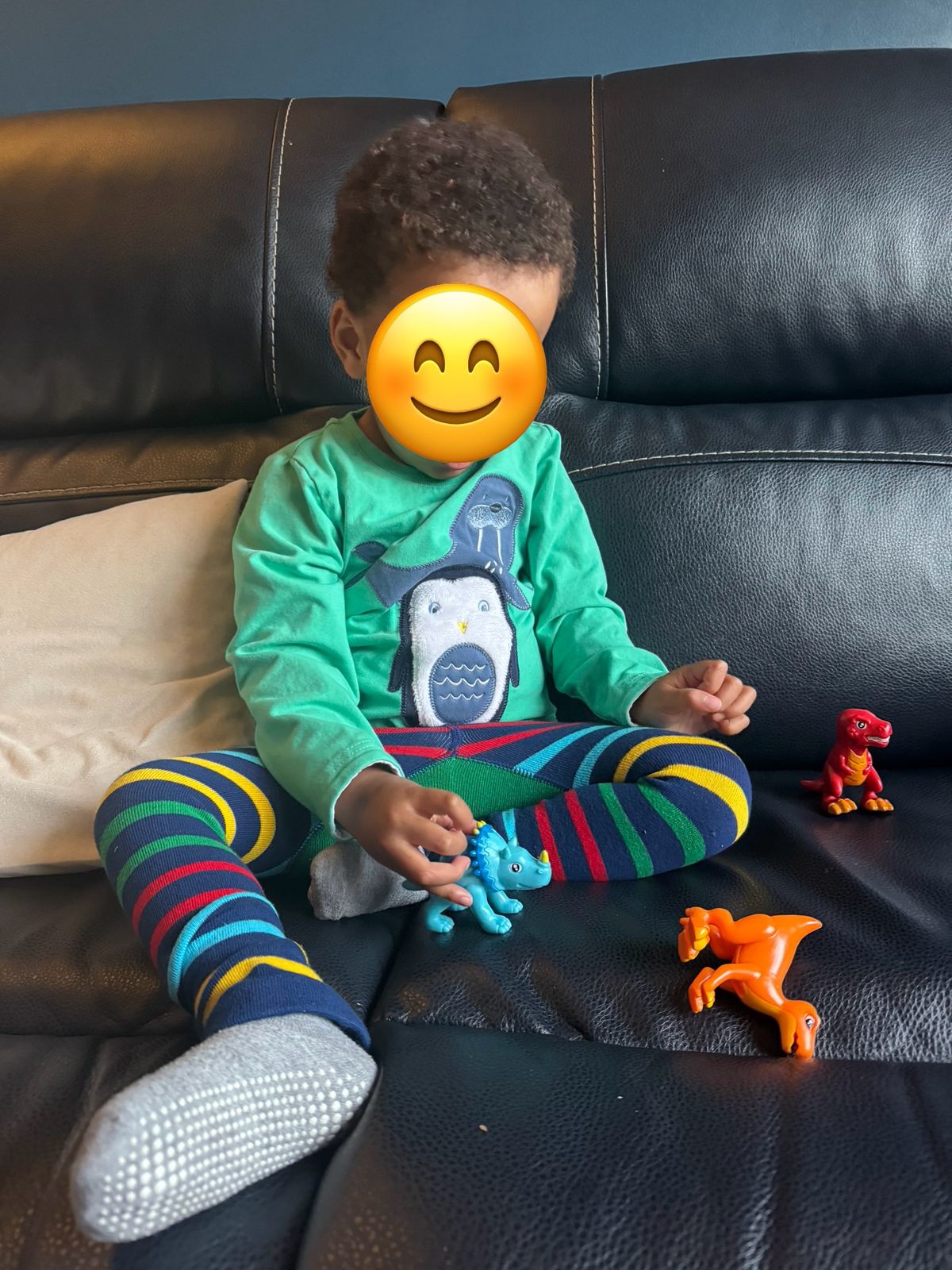 These awesome navy blue and green stripy leggings feature a playful Monster Truck print on the bottom! Made from soft, stretchy fabric, they're designed to keep your little one comfortable all day long. They are durable and easy to care for, perfect for playtime, naptime, and everything in between, making them a practical addition to any child's wardrobe.